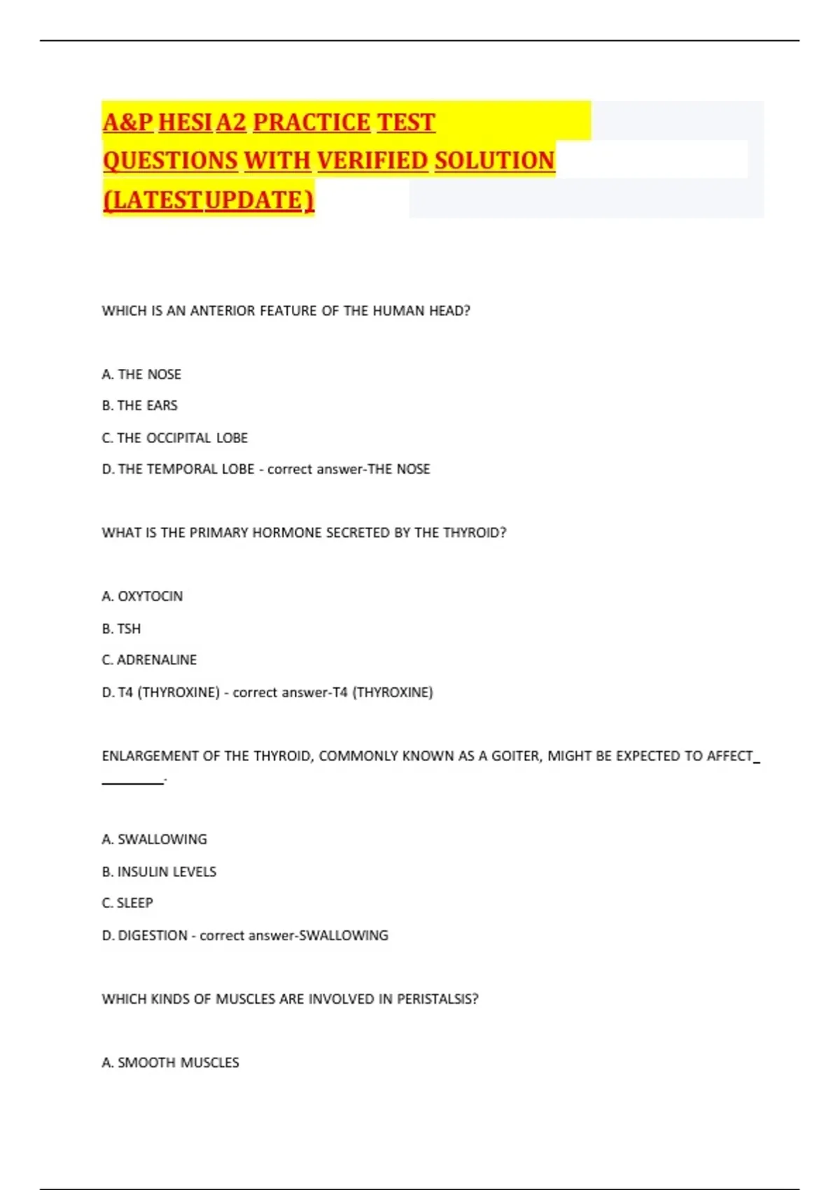 A&P HESI A2 PRACTICE TEST QUESTIONS WITH VERIFIED SOLUTION (LATEST UPDATE )