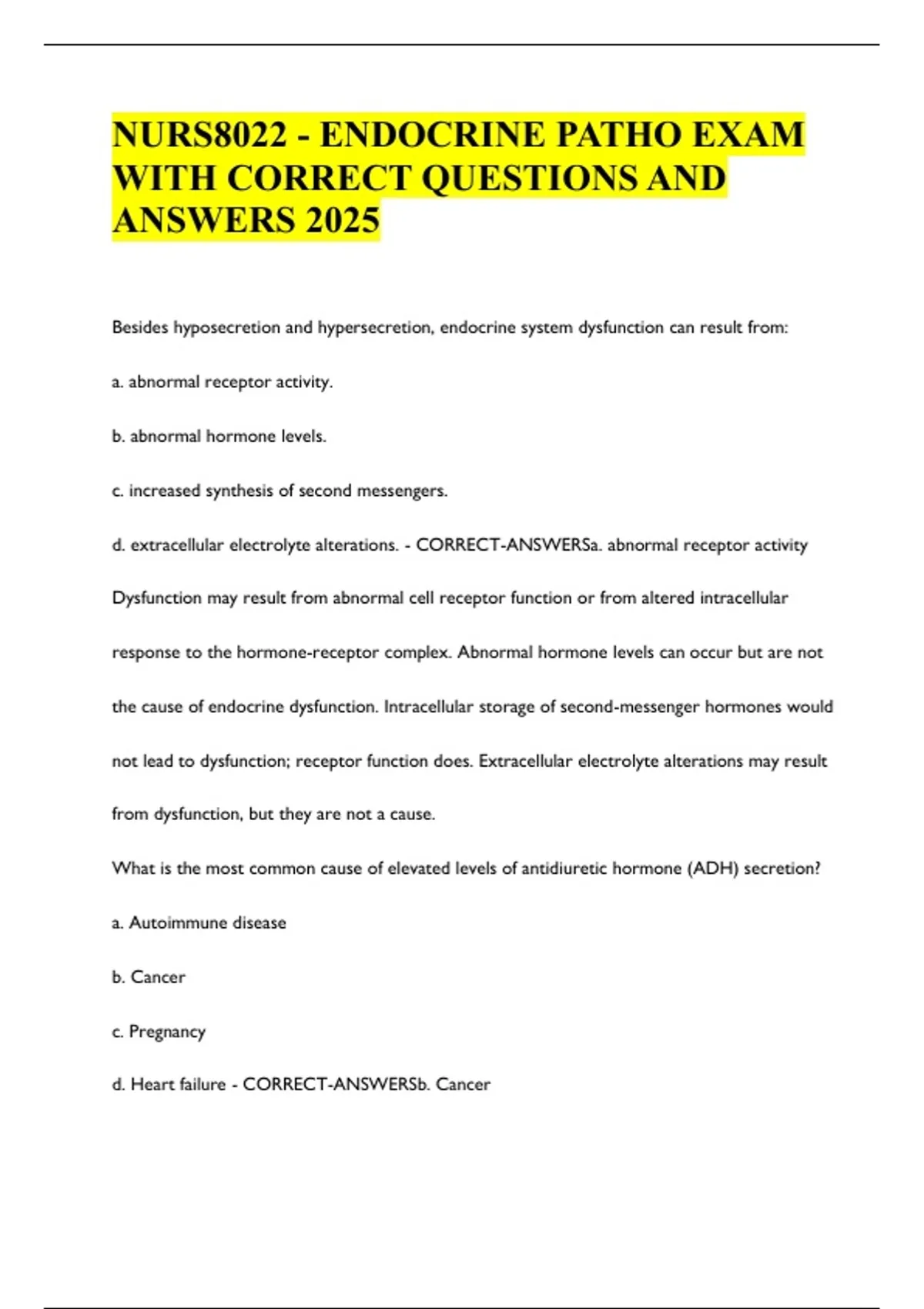 NURS8022 - ENDOCRINE PATHO EXAM WITH CORRECT QUESTIONS AND ANSWERS 2025