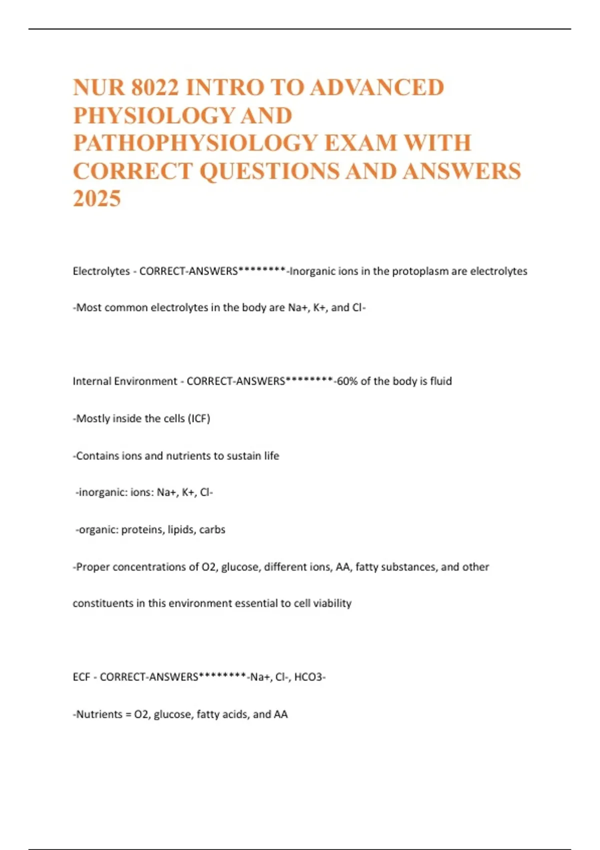 NUR 8022 INTRO TO ADVANCED PHYSIOLOGY AND PATHOPHYSIOLOGY EXAM WITH CORRECT QUESTIONS AND ANSWERS 2025