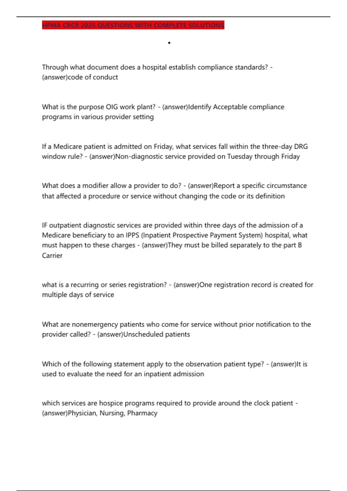 , HFMA CRCR 2025 QUESTIONS WITH COMPLETE SOLUTIONS