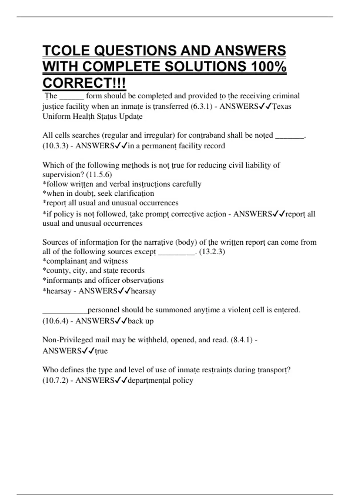 TCOLE QUESTIONS AND ANSWERS WITH COMPLETE SOLUTIONS 100% CORRECT!!!