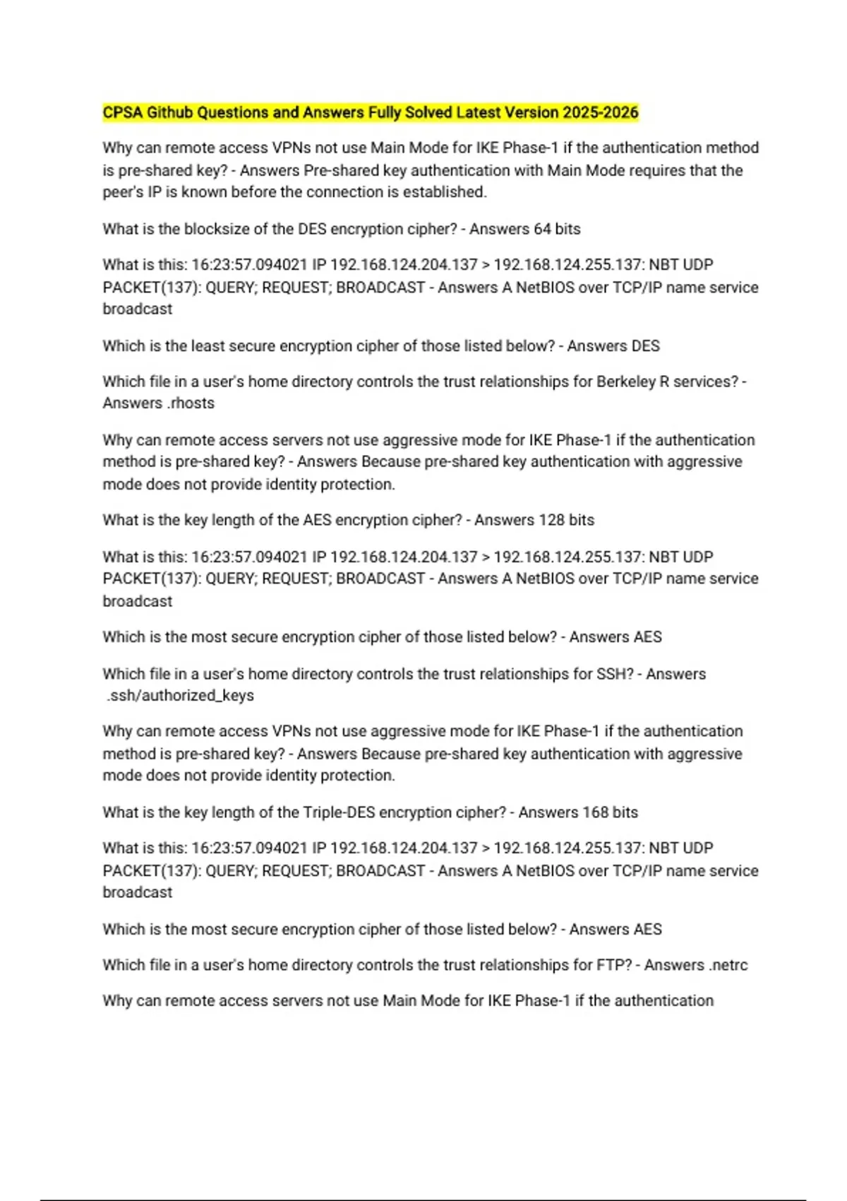 Which is the least secure encryption cipher of those listed below? - Answers DES