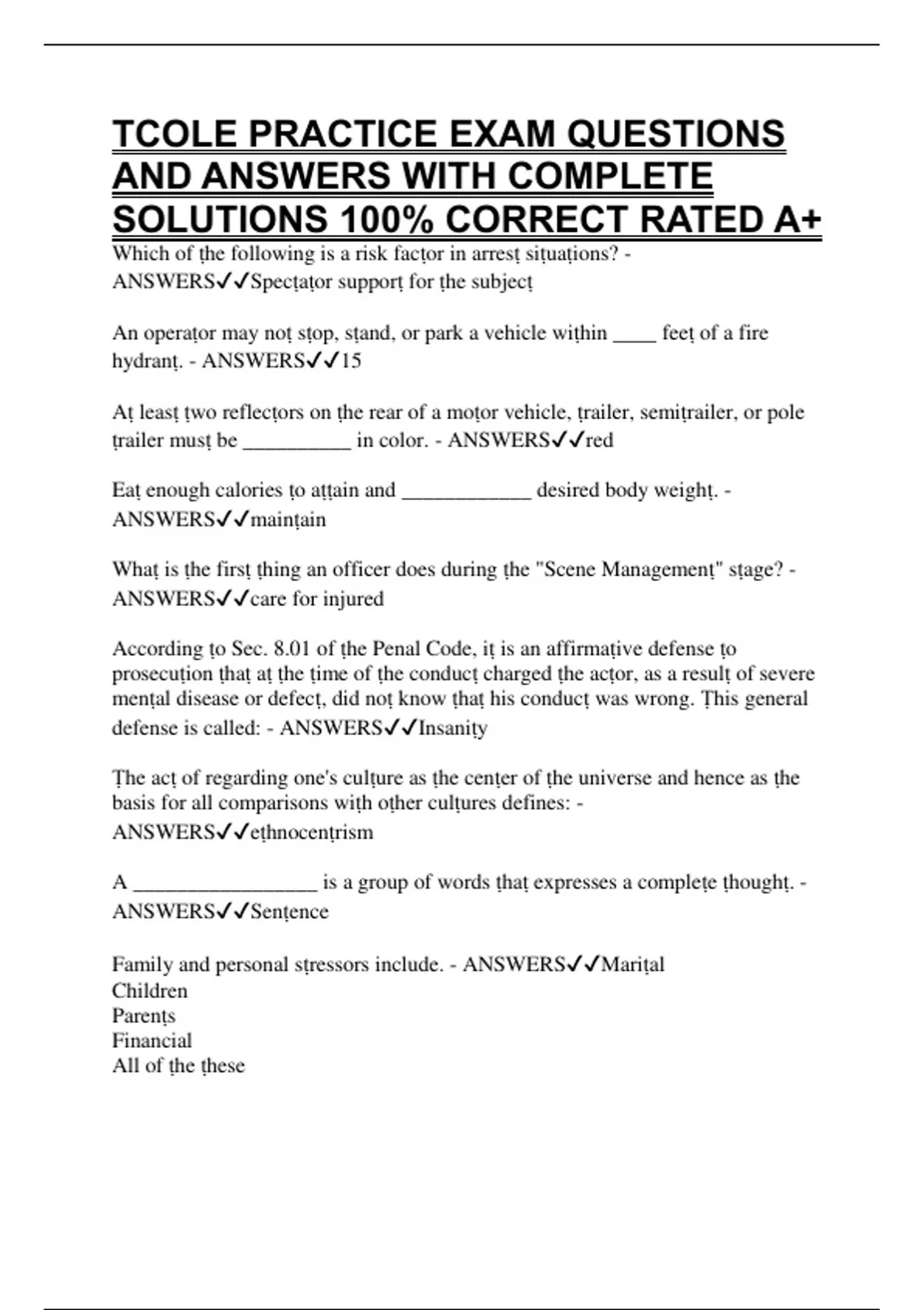 TCOLE PRACTICE EXAM QUESTIONS AND ANSWERS WITH COMPLETE SOLUTIONS 100% CORRECT RATED A+