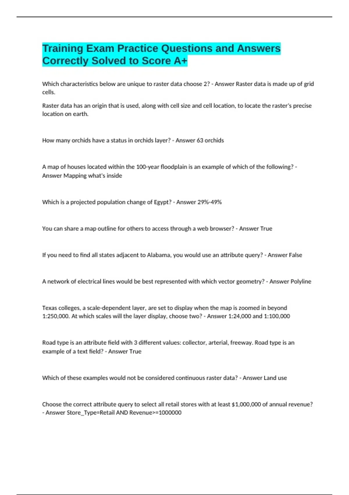 Training Exam Practice Questions and Answers Correctly Solved to Score A+