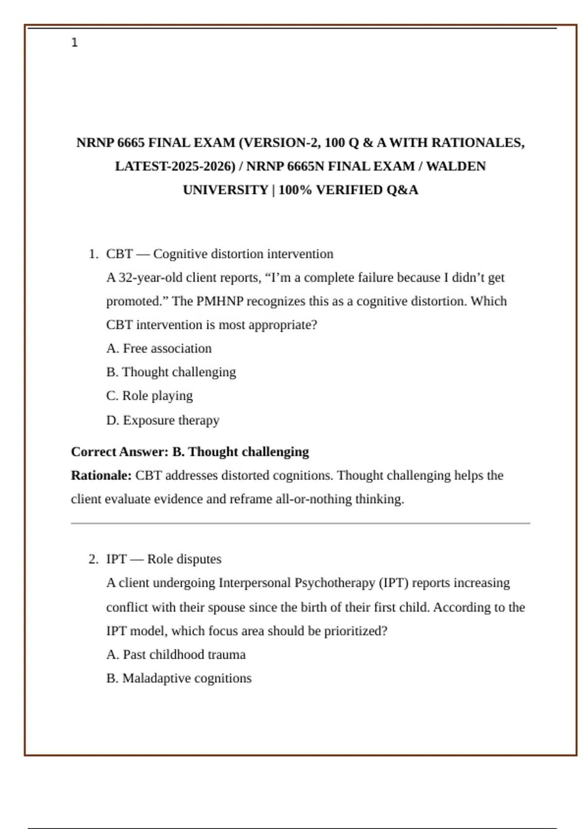NRNP 6665 FINAL EXAM (VERSION-2, 100 Q & A WITH RATIONALES,