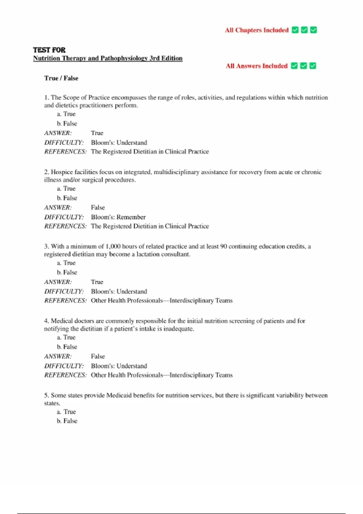 Nutrition Therapy and Pathophysiology, 3rd Edition – Marcia Nelms – Test Bank All Chapters Complete