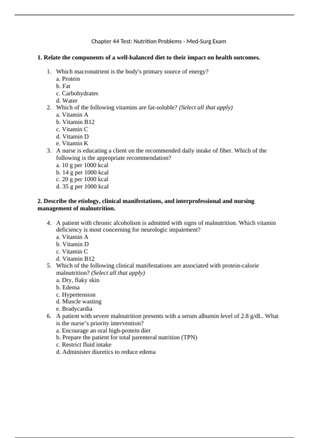 2. Which of the following vitamins are fat-soluble? (Select all that apply)