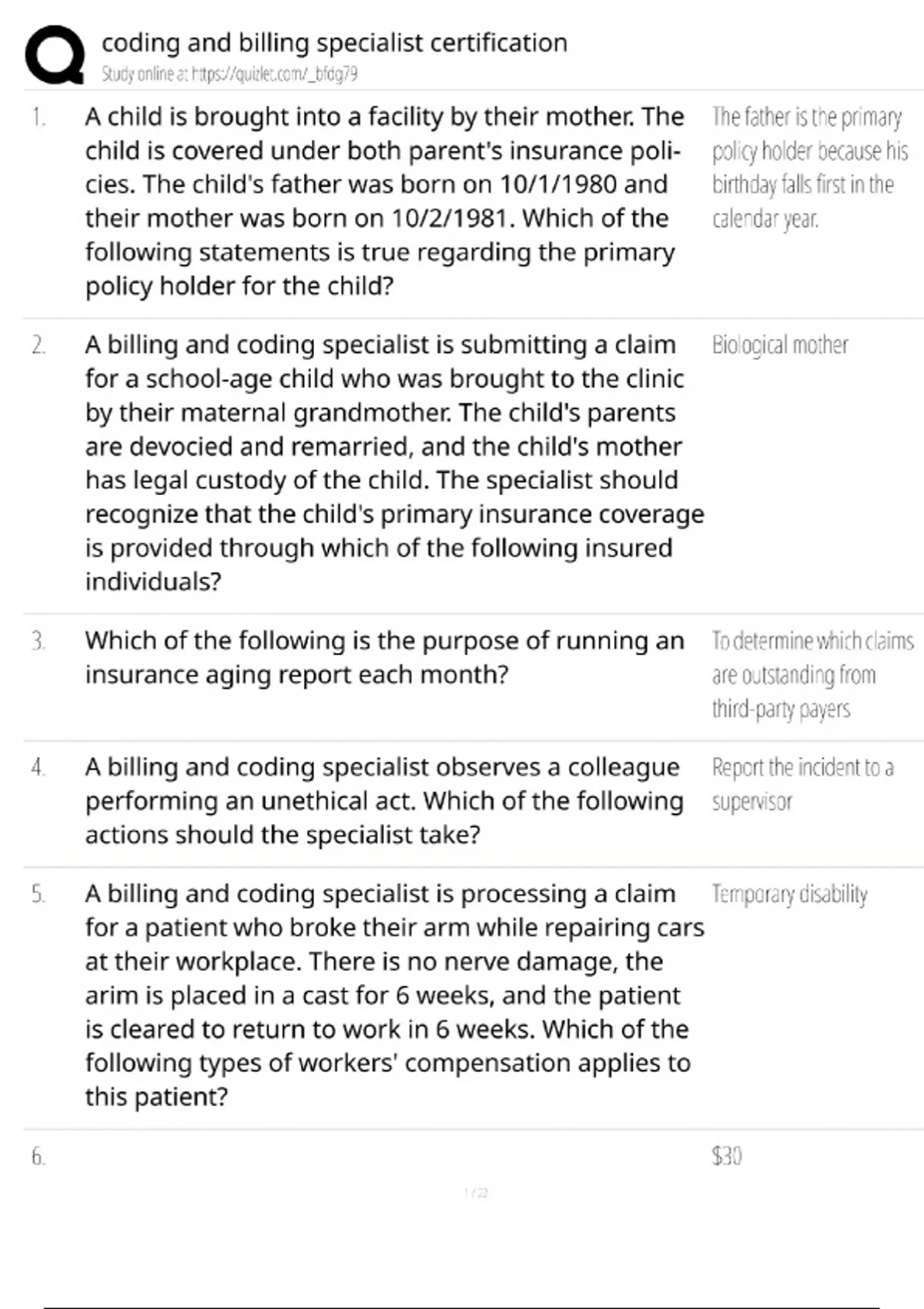 Coding and Billing Specialist Certification / CPC CPB 2025 / Score 100% Study Guide & Test Bank