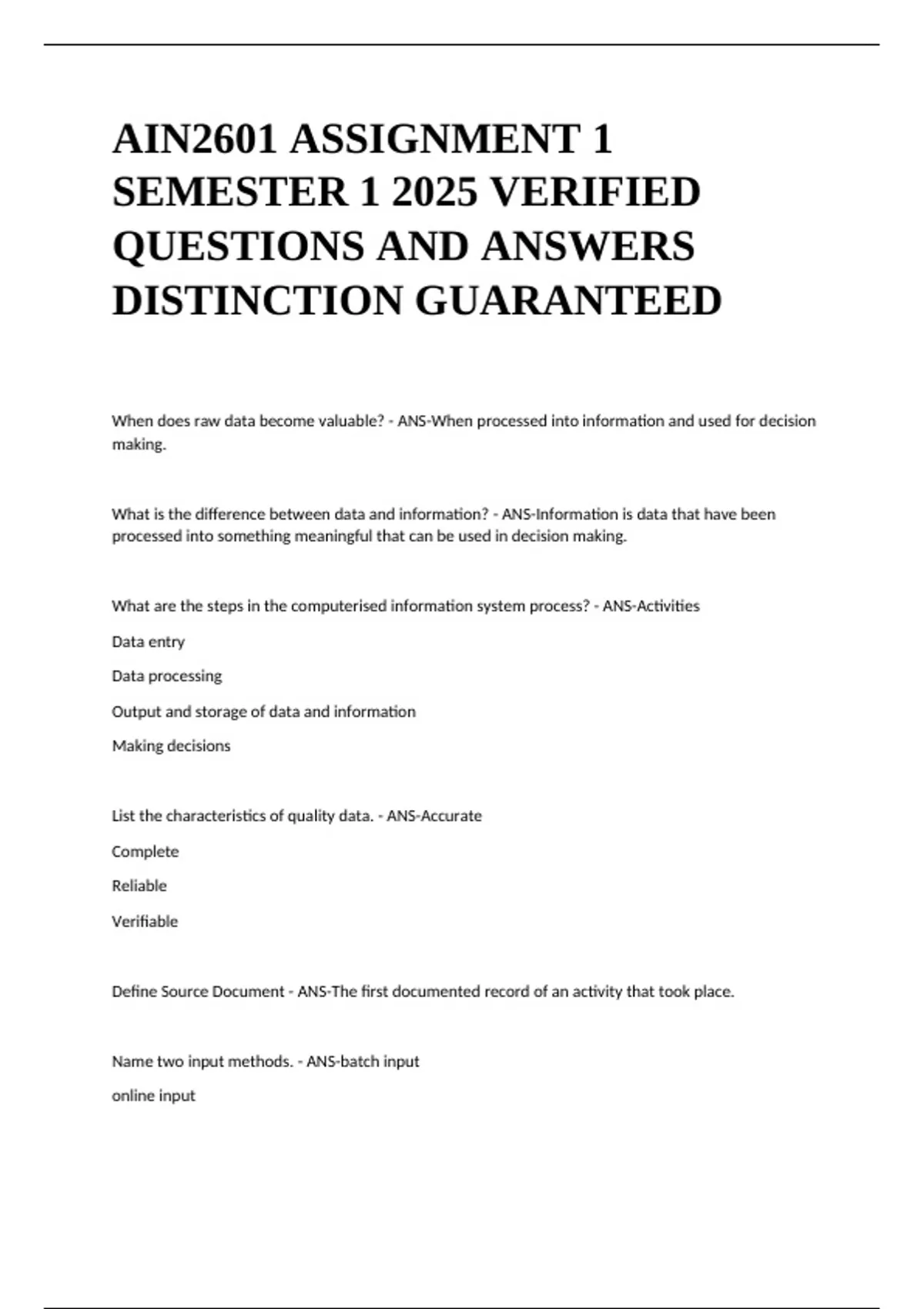 AIN2601 ASSIGNMENT 1