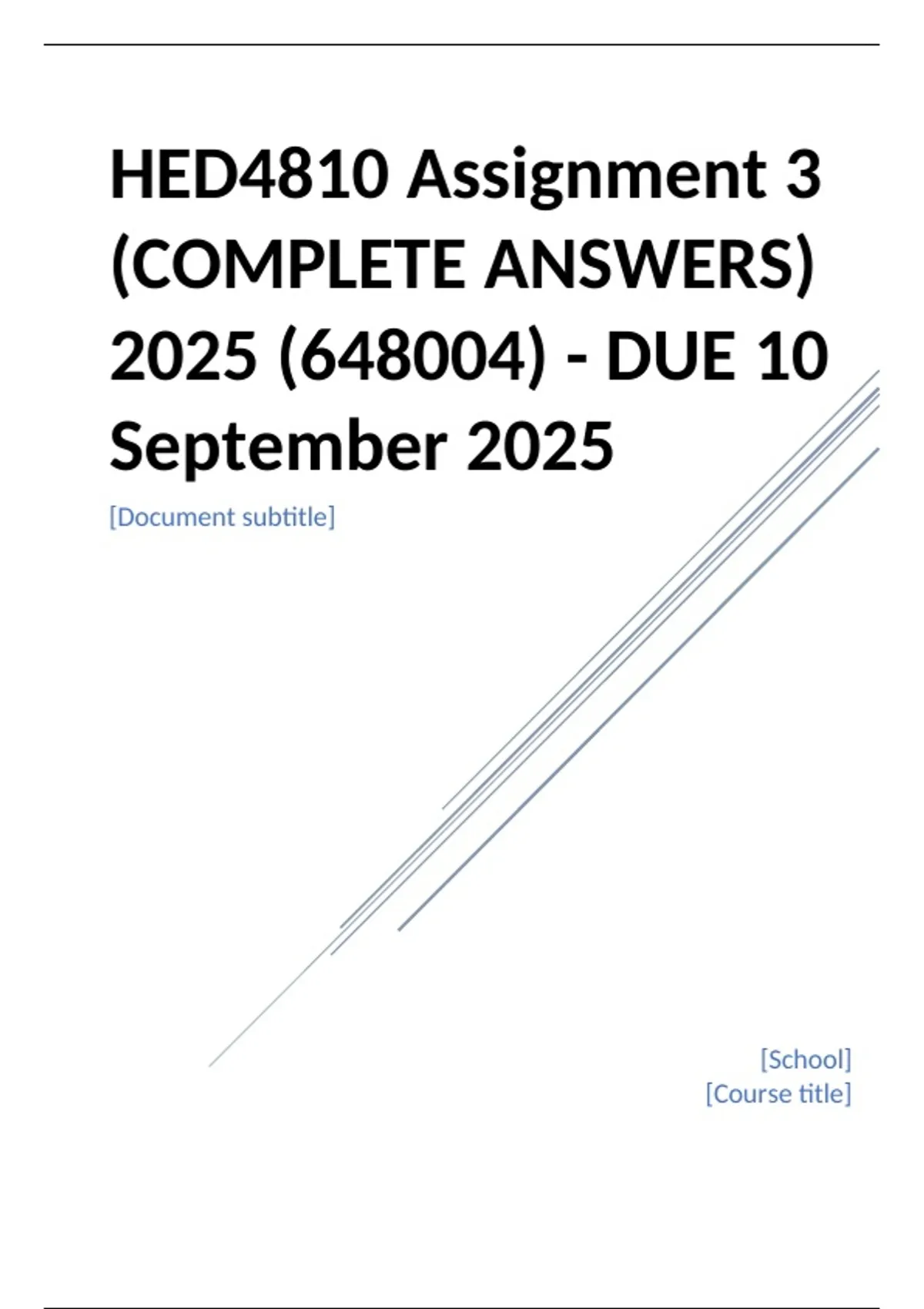 HED4810 Assignment 3 (COMPLETE ANSWERS) 2025 (648004) - DUE 10 September 2025; 100%