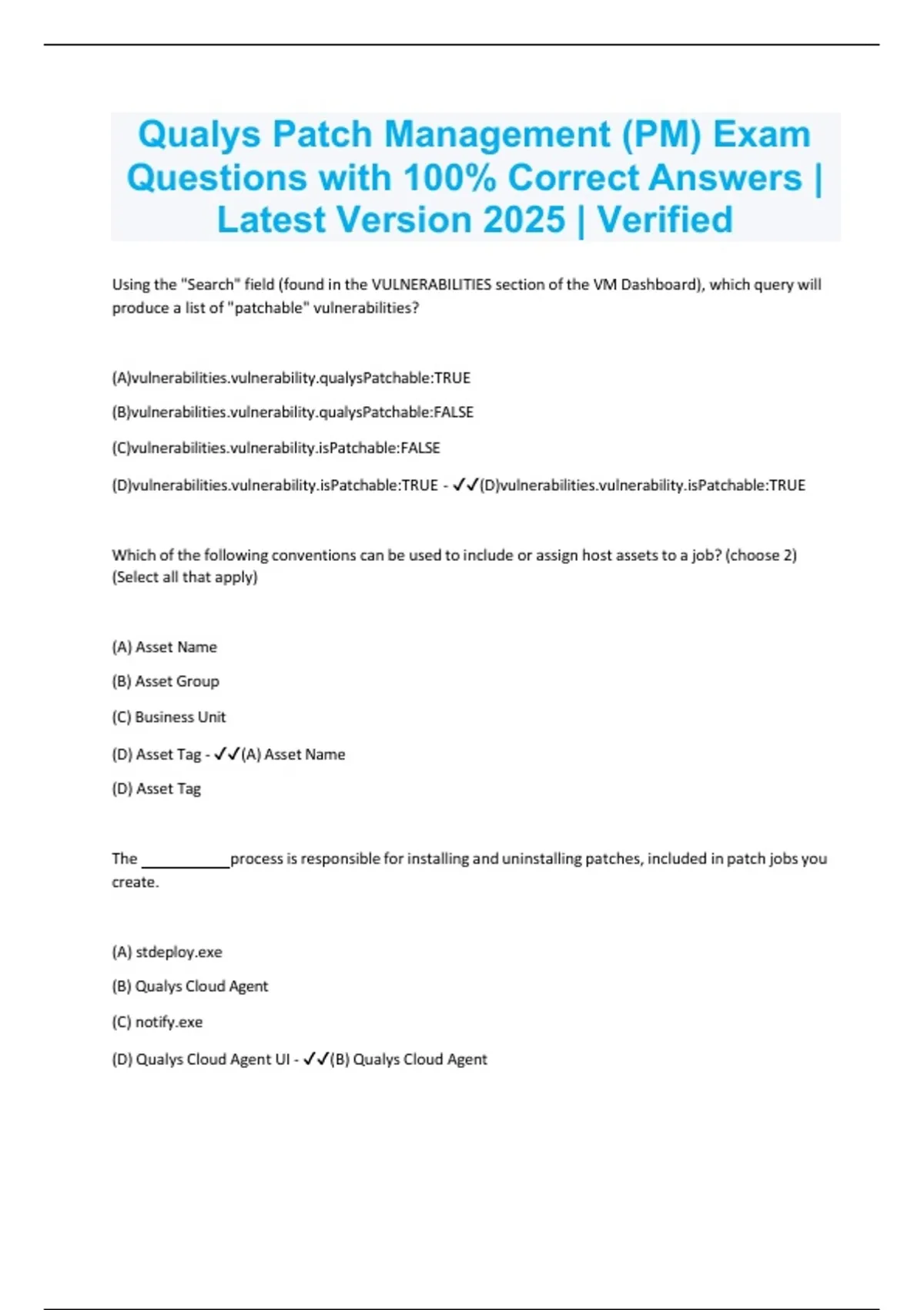 (D) The patch cannot be uninstalled. - ✔✔(B) The patch cannot be downloaded by Qualys Cloud Agent.