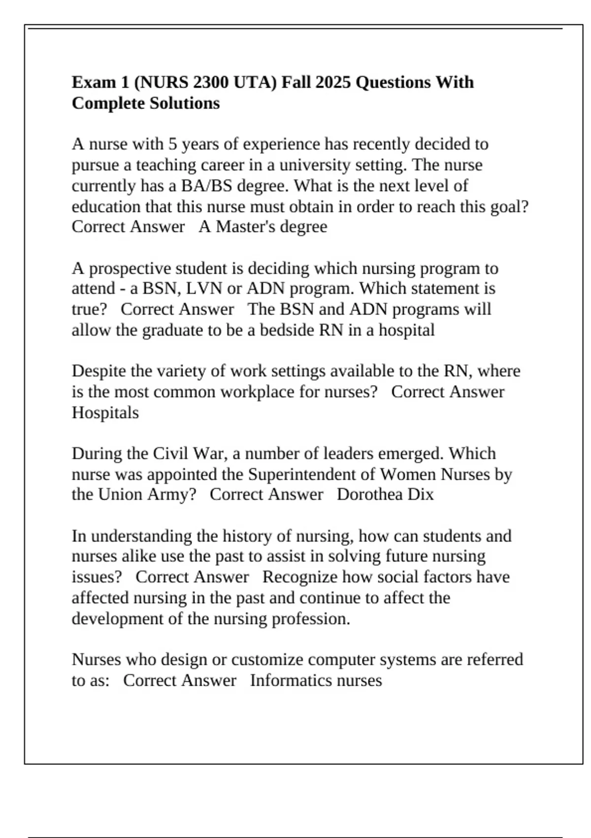 to as: Correct Answer Informatics nurses