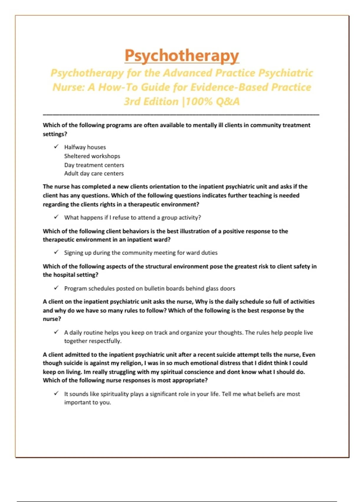 Psychotherapy for the Advanced Practice Psychiatric Nurse: A How-To Guide for Evidence-Based Practice 3rd Edition |100% Q&A
