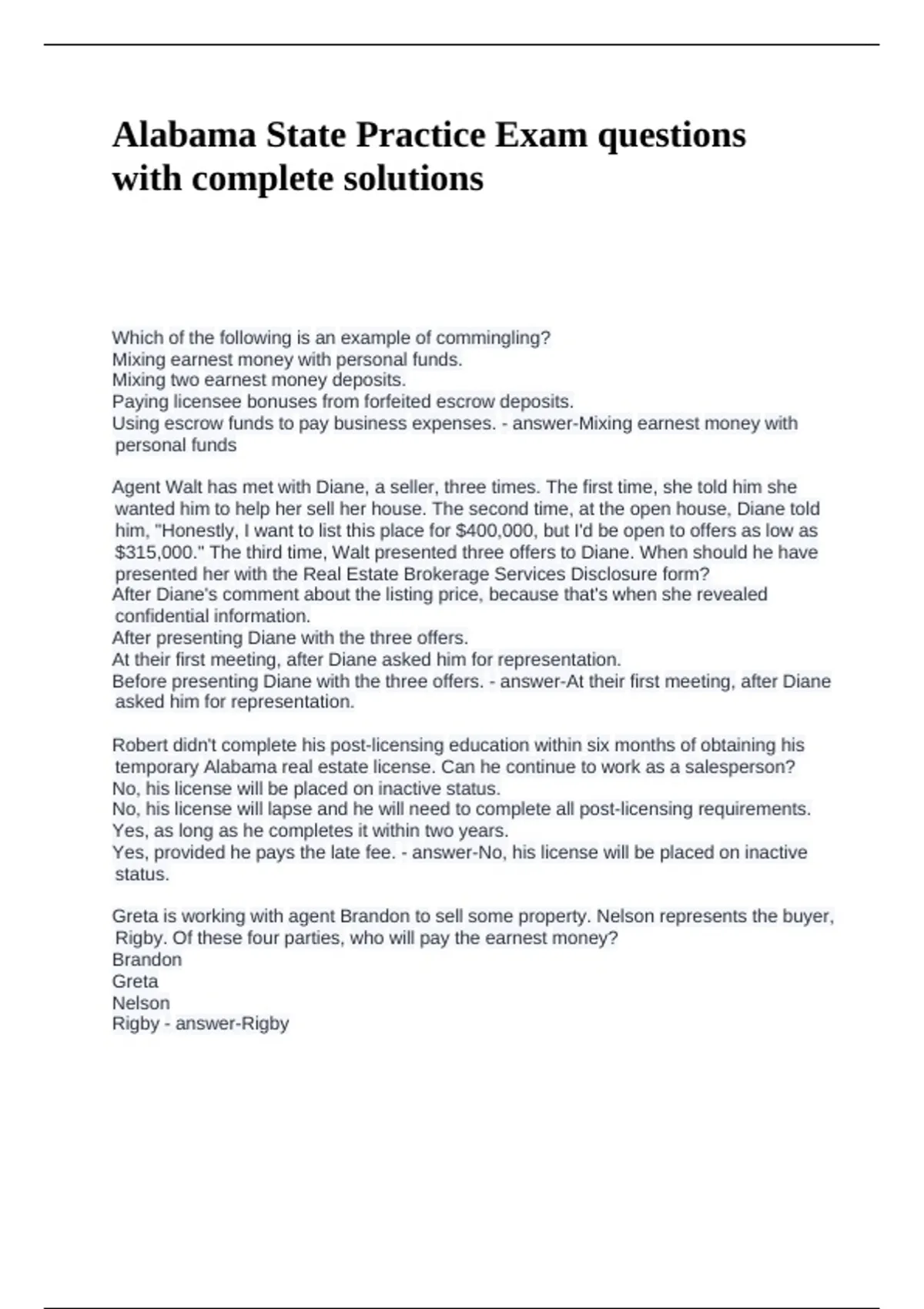 Alabama State Practice Exam questions