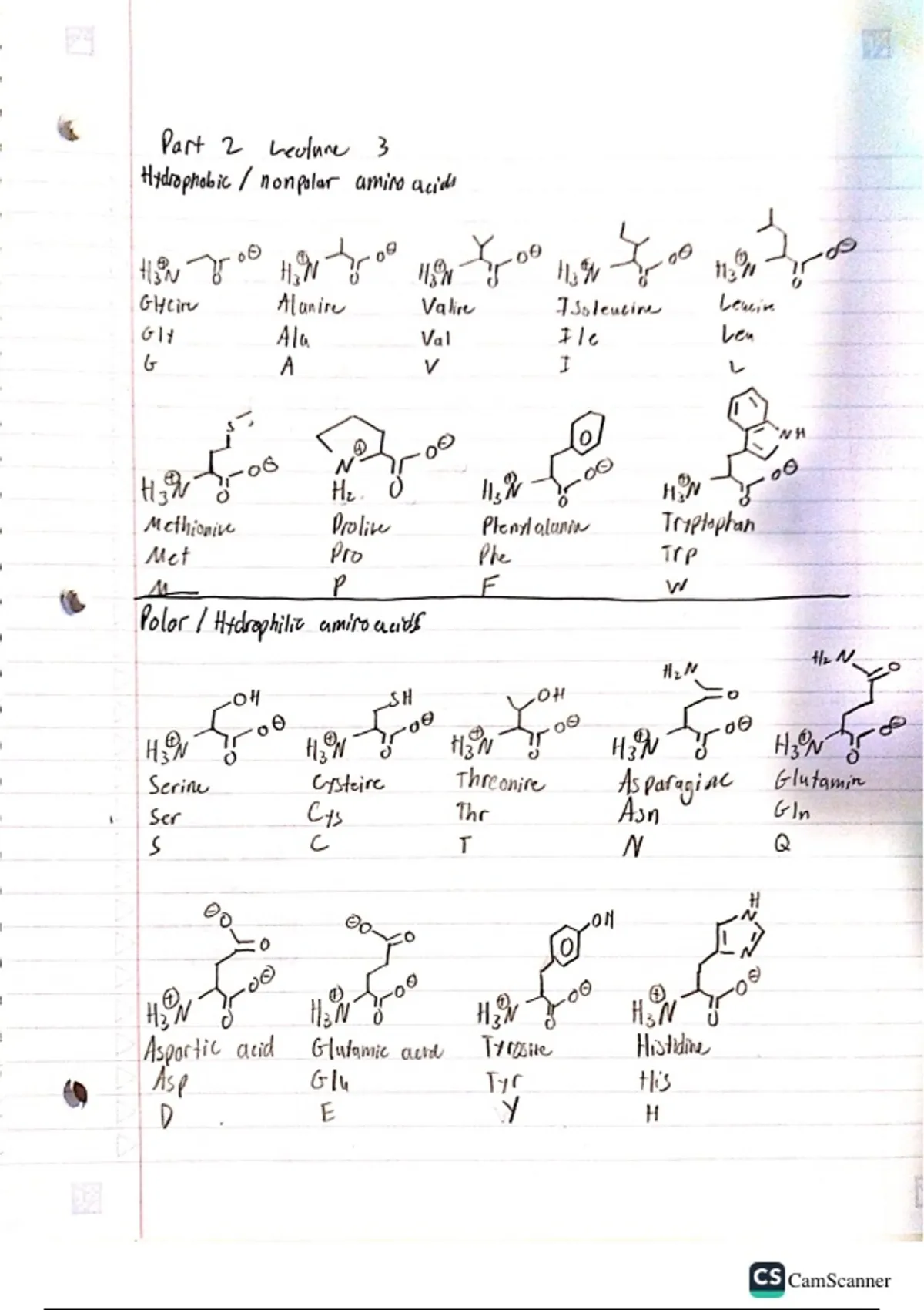 Comprehensive notes on amino acids, including their classification, chemical structures, properties, and peptide bond formation. Explains amino acid functional groups and their roles in protein structure. Based on UNF Biochemistry lectures, these notes are clear, concise, and designed for success on Exam 1 and for MCAT amino acid preparation.