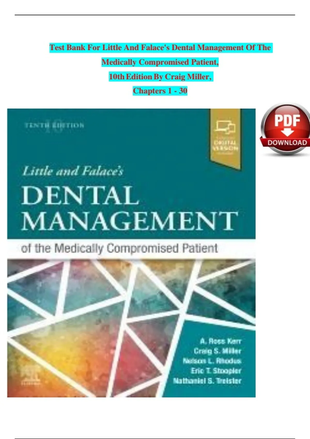 Test Bank For Little And Falace's Dental Management Of The