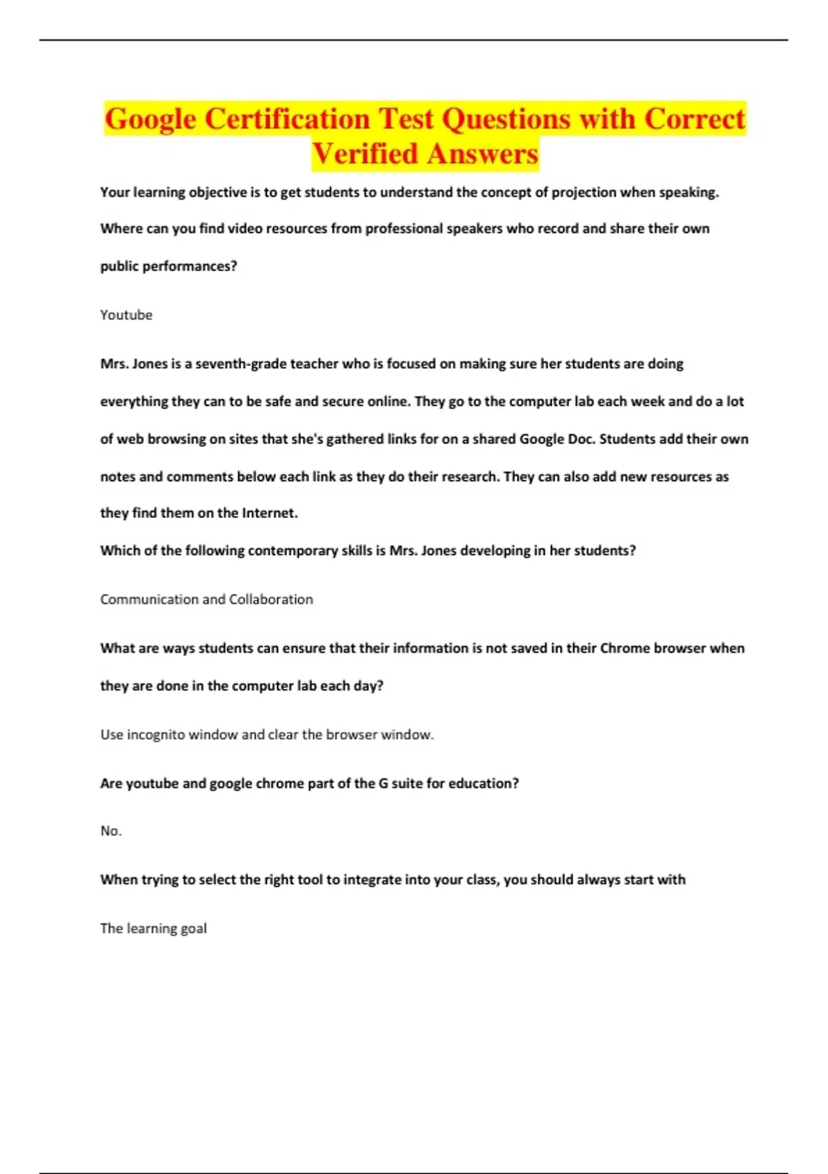 Google Certification Test Questions with Correct