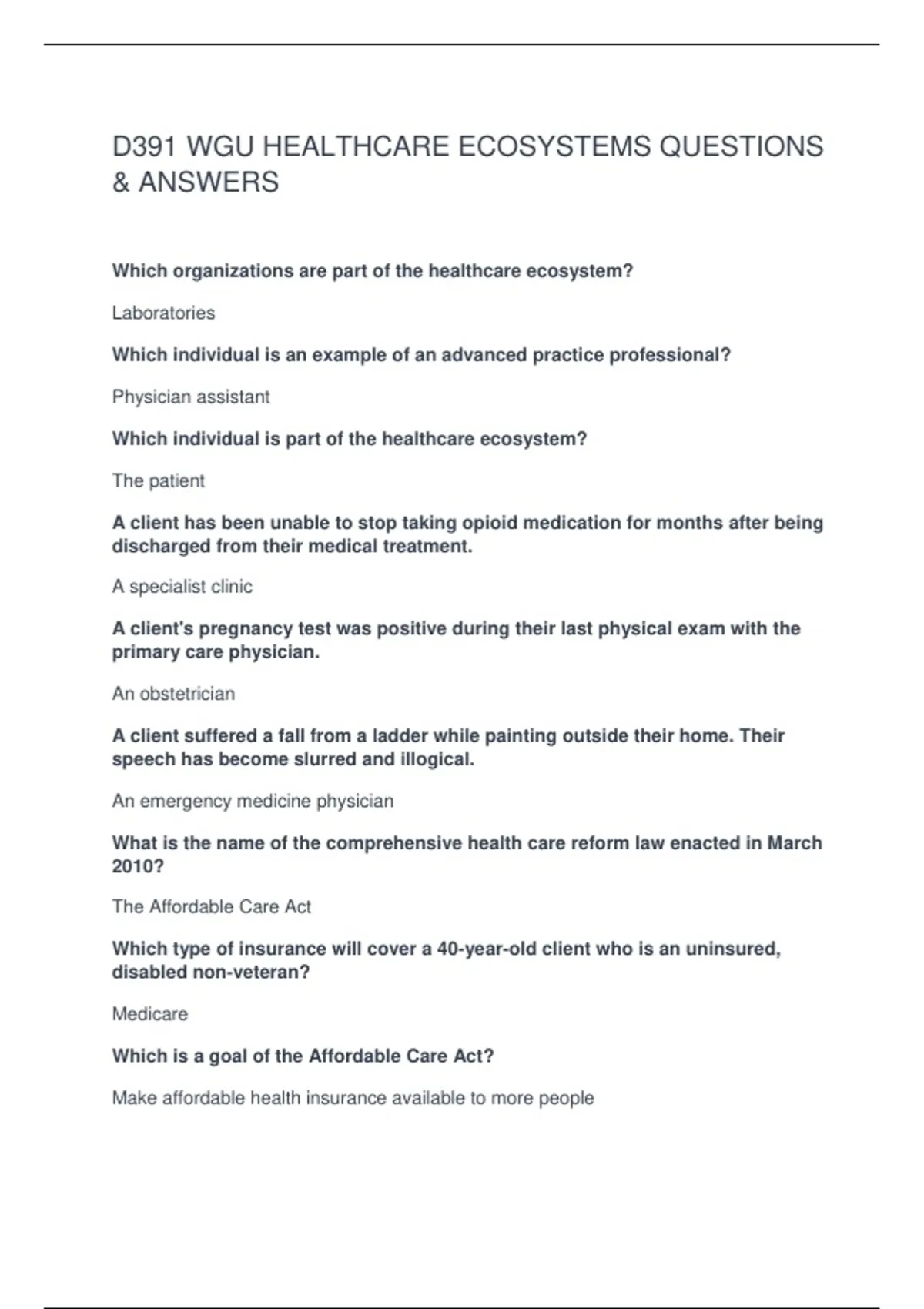 D391 WGU HEALTHCARE ECOSYSTEMS QUESTIONS