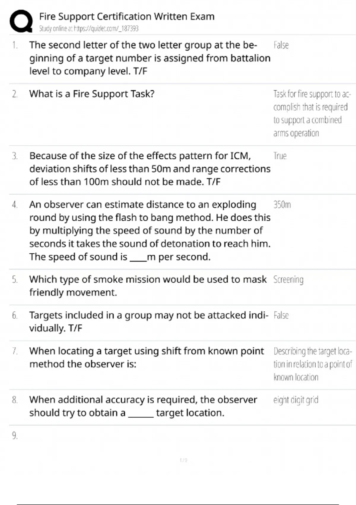 Fire Support Certification / Written Exam Study Guide & Test Bank / 2025 Update / Score 100%
