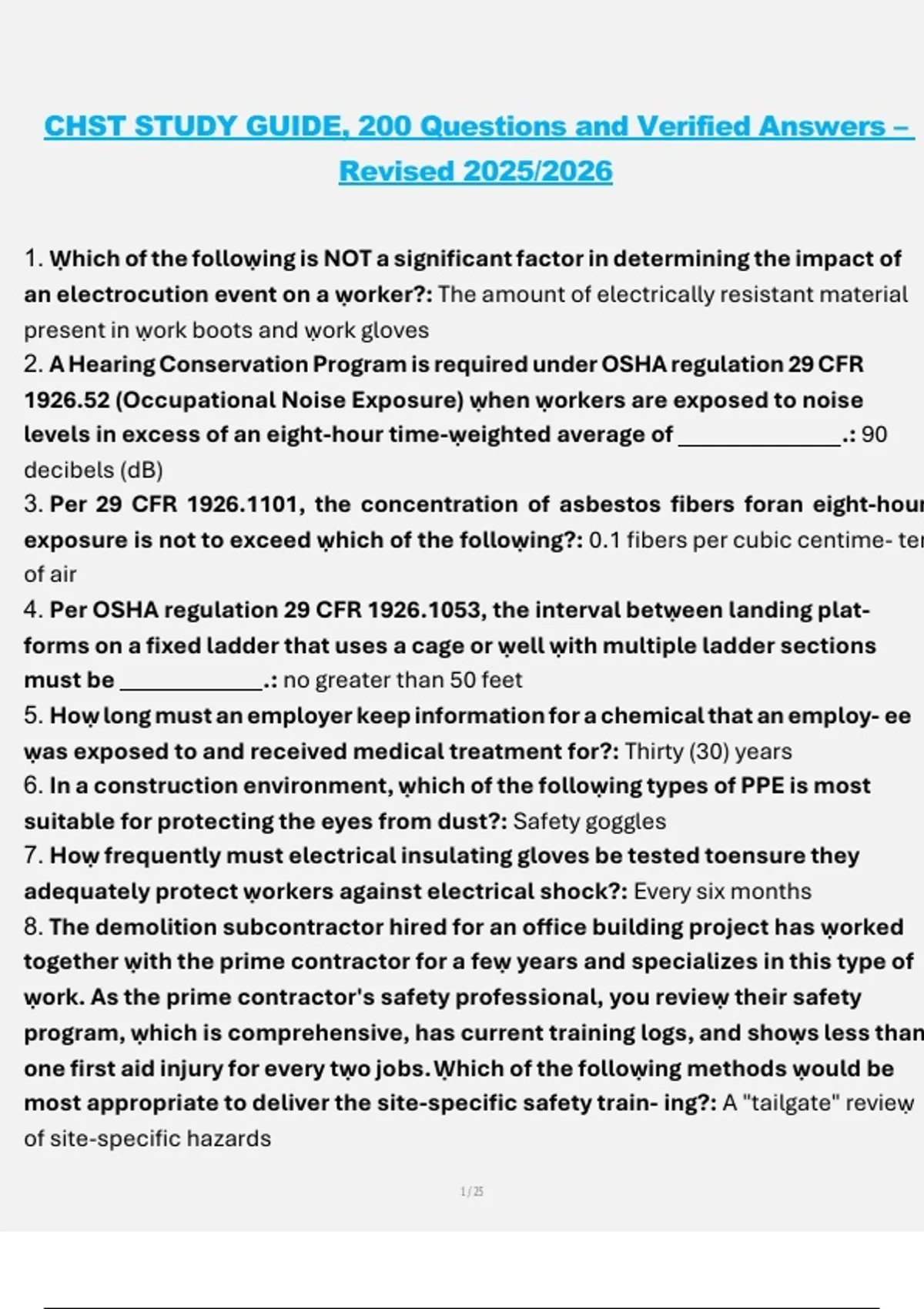 This study guide provides 200 carefully selected questions with verified answers for the CHST exam, revised for the 2025/2026 academic year. It is a reliable and updated resource covering essential exam topics to support effective learning and preparation. The material is designed to strengthen understanding and improve exam performance.