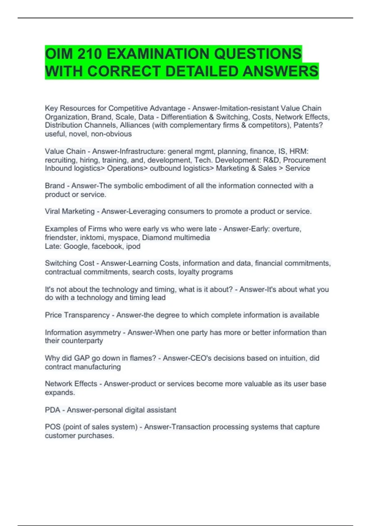 OIM 210 EXAMINATION QUESTIONS