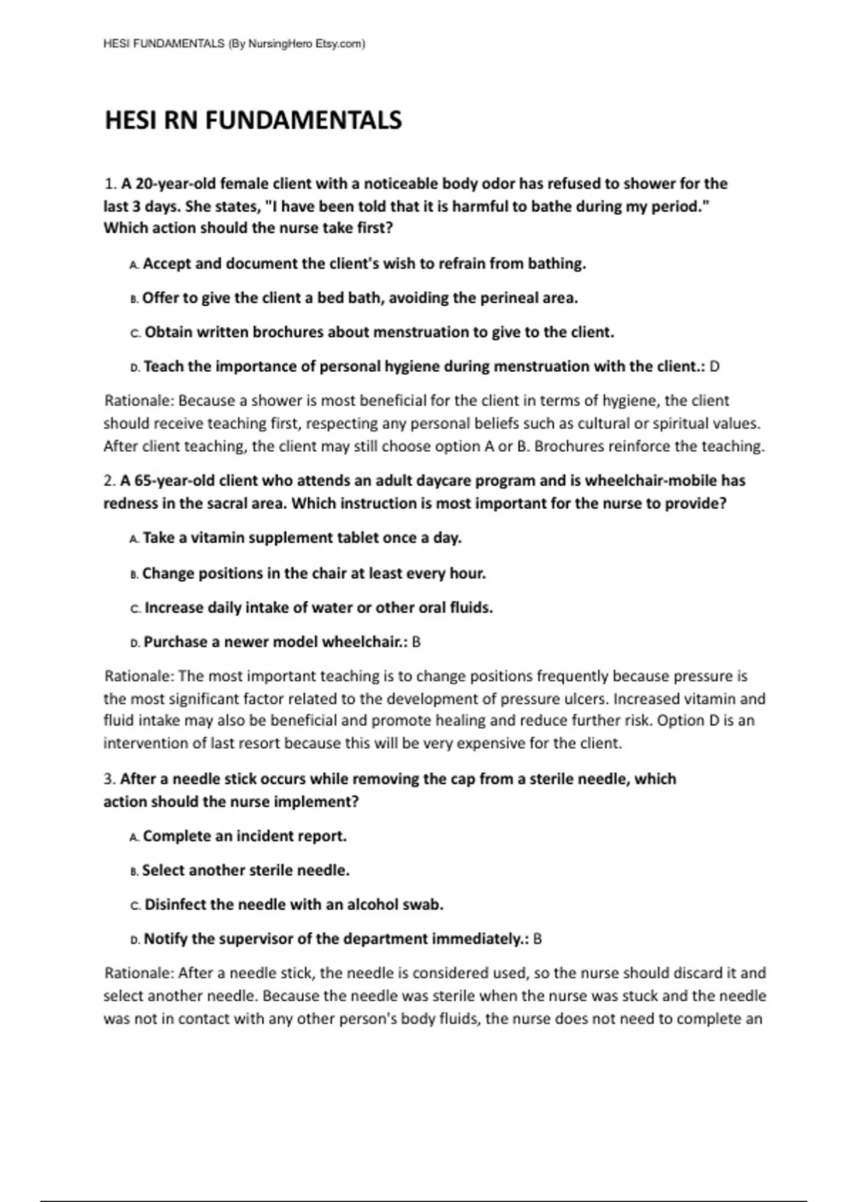 HESI FUNDAMENTALS (By NursingHero Etsy.com)