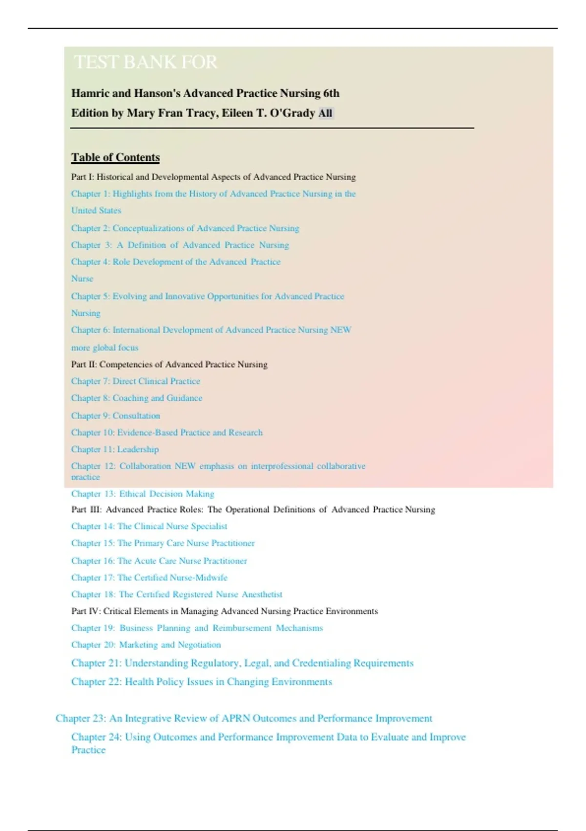 Tracy: Hamric & Hanson's Advanced Practice Nursing, t6h Edition