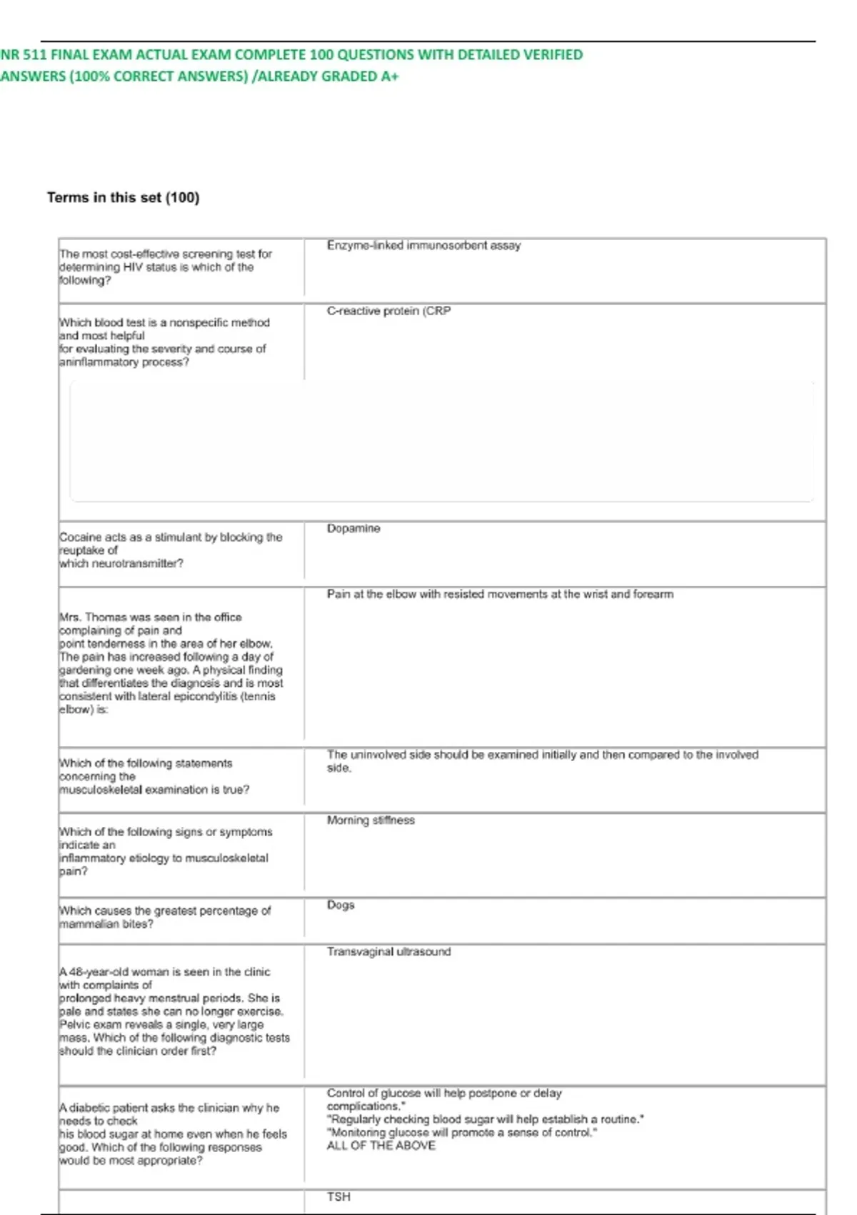 NR 511 FINAL EXAM ACTUAL EXAM COMPLETE 100 QUESTIONS WITH DETAILED VERIFIED ANSWERS (100% CORRECT ANSWERS) /ALREADY GRADED A+