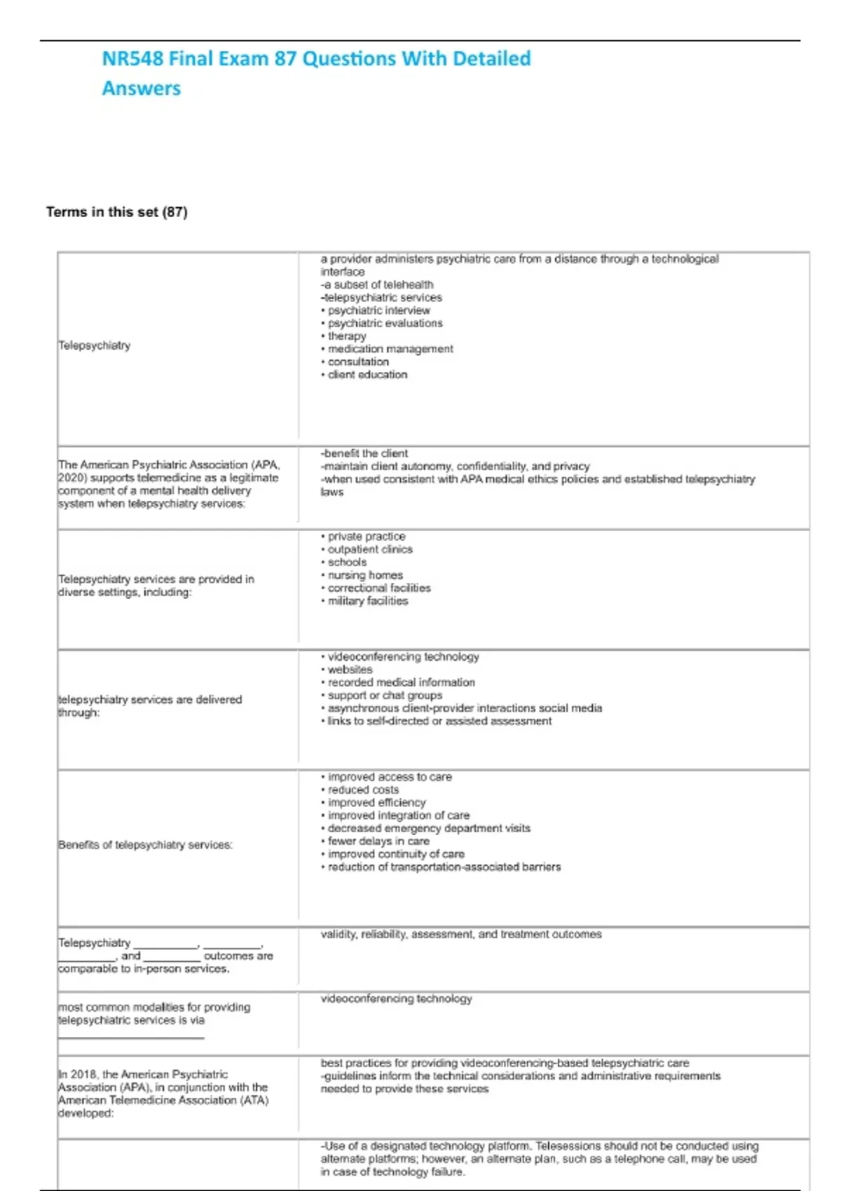 , NR548 Final Exam 87 Questions With Detailed