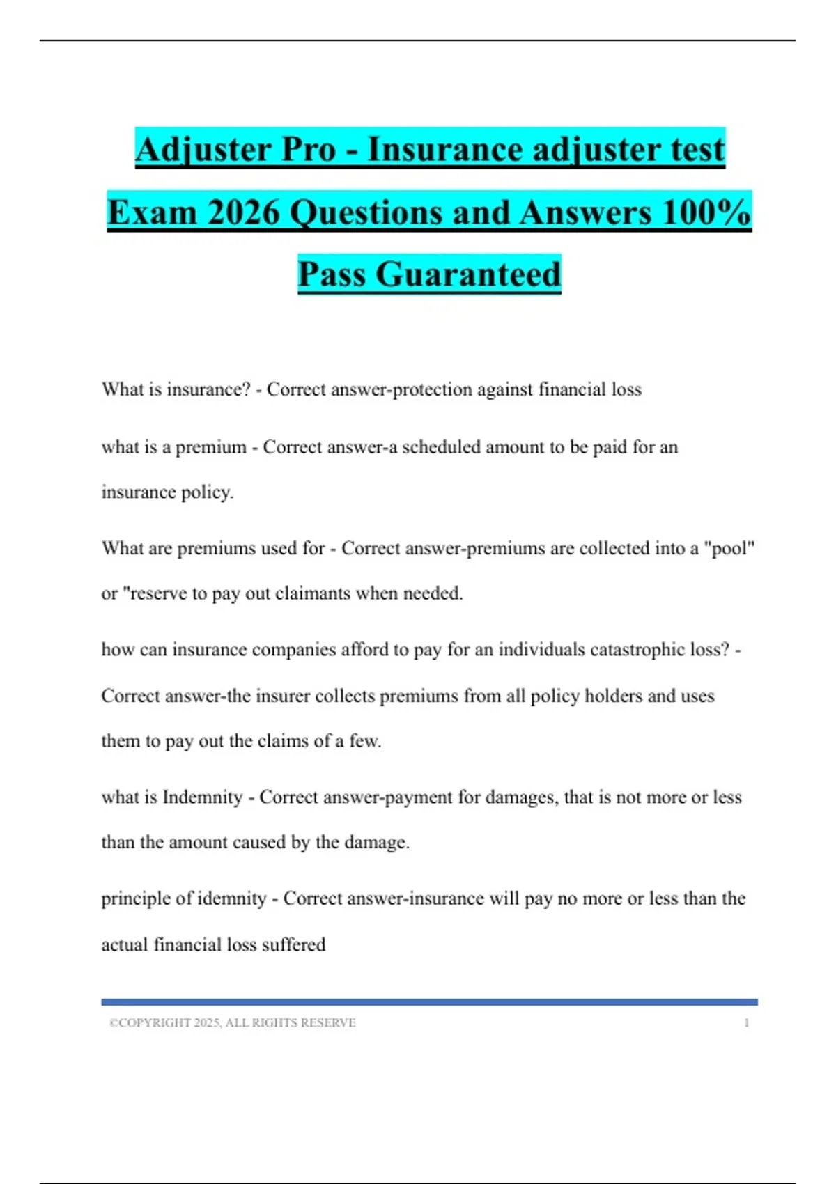 what is Indemnity - Correct answer-payment for damages, that is not more or less