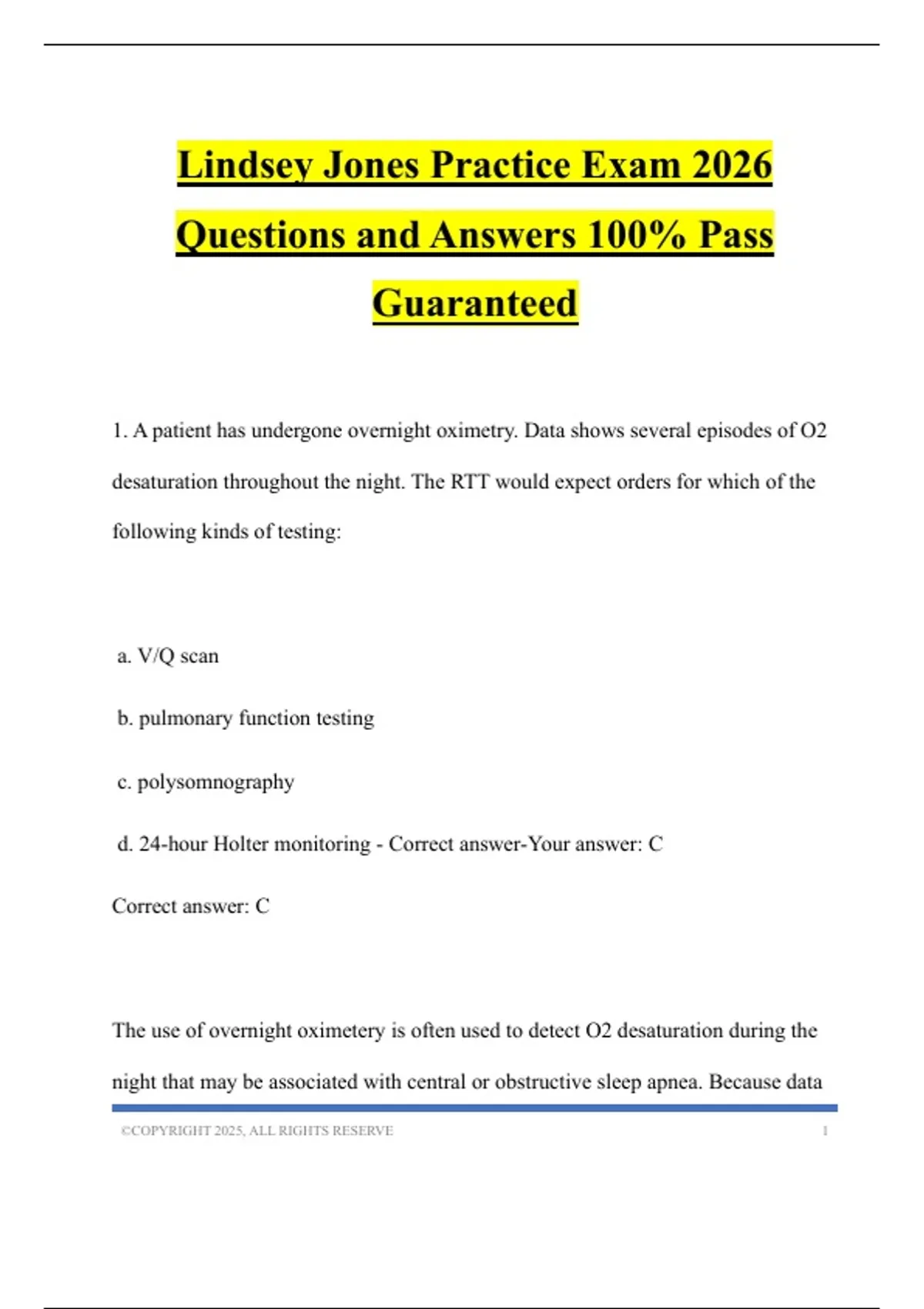 1. A patient has undergone overnight oximetry. Data shows several episodes of O2
