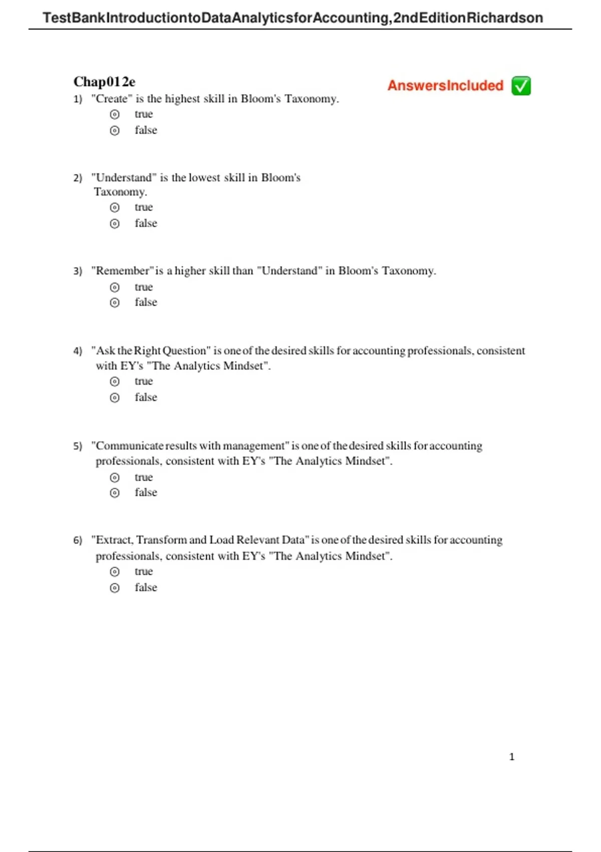 TestBank IntroductiontoDataAnalyticsforAccounting, 2ndEdition Richardson