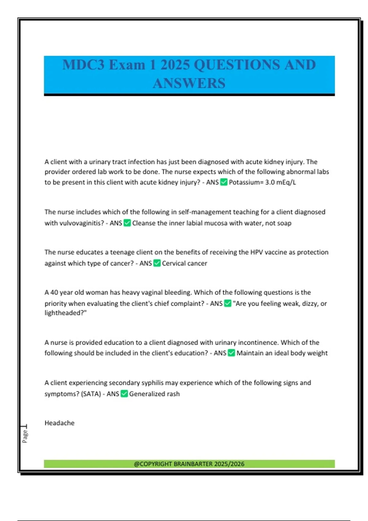 MDC3 Exam 1 2025 QUESTIONS AND ANSWERS