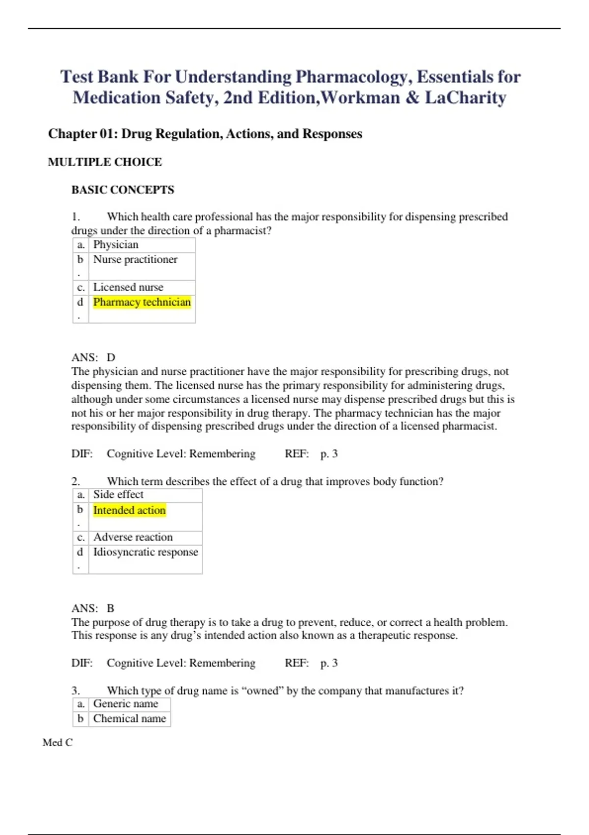 Test Bank For Understanding Pharmacology, Essentials for Medication Safety, 2nd Edition,Workman & LaCharity