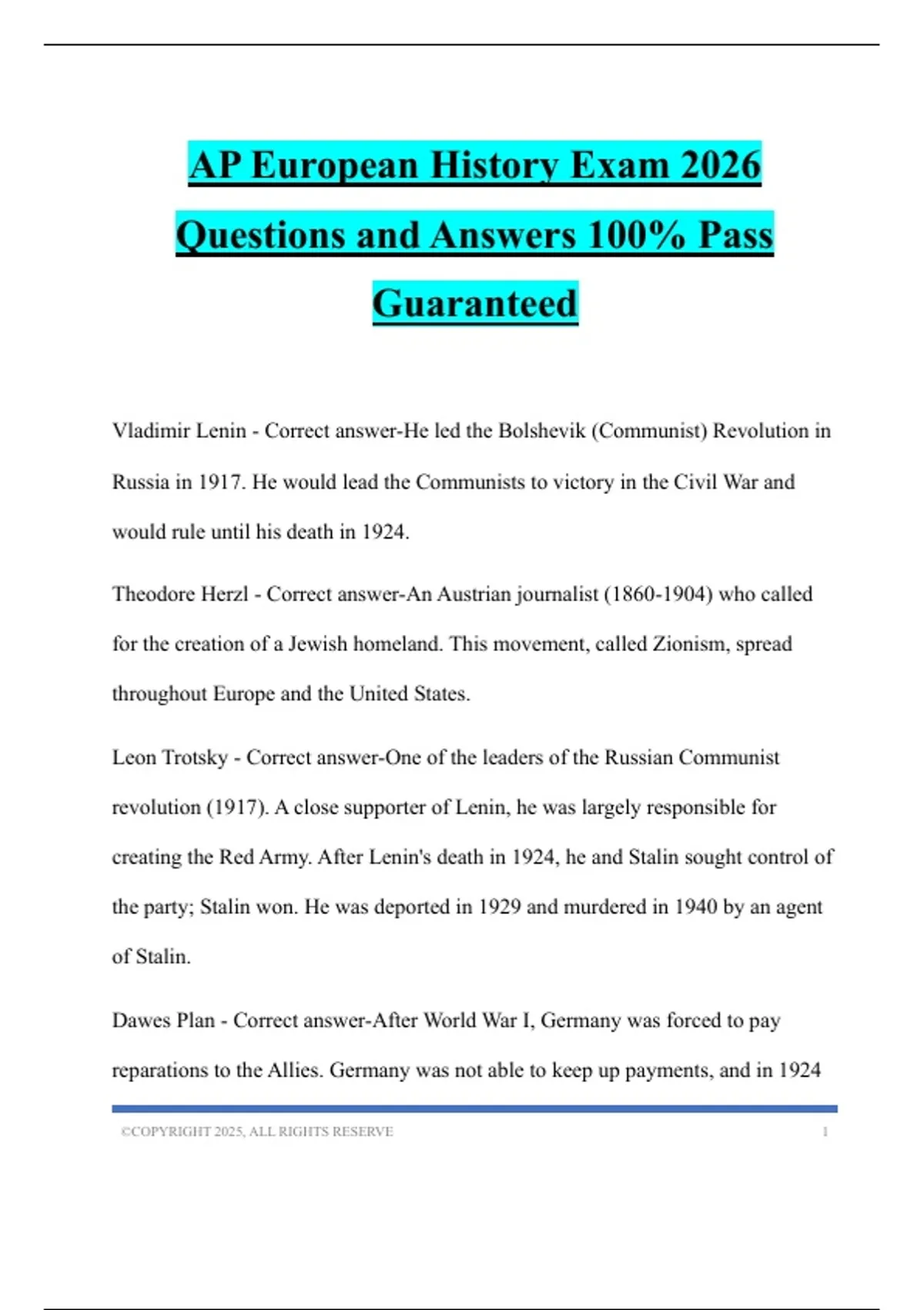 Dawes Plan - Correct answer-After World War I, Germany was forced to pay