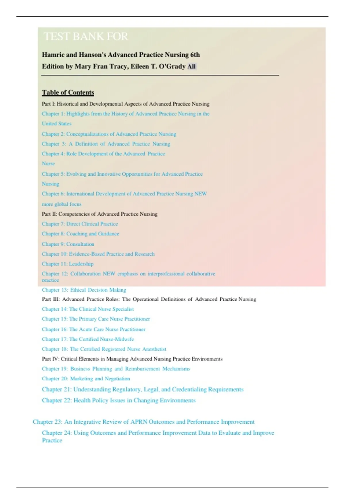 TEST BANK FOR Hamric and Hanson's Advanced Practice Nursing 6th Edition by Mary Fran Tracy, Eileen T. O'Grady All