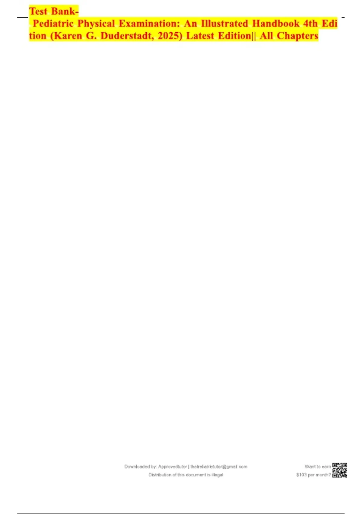 TEST BANK FOR PEDIATRIC PHYSICAL EXAMINATION: AN ILLUSTRATED HANDBOOK 4TH EDITION BY KAREN G. DUDERSTADT PHD RN CPNP FAAN VICTORIA F. KEETON PHD RN CPNP-PC CNS|| ALL CHAPTERS|| LATEST EDITION