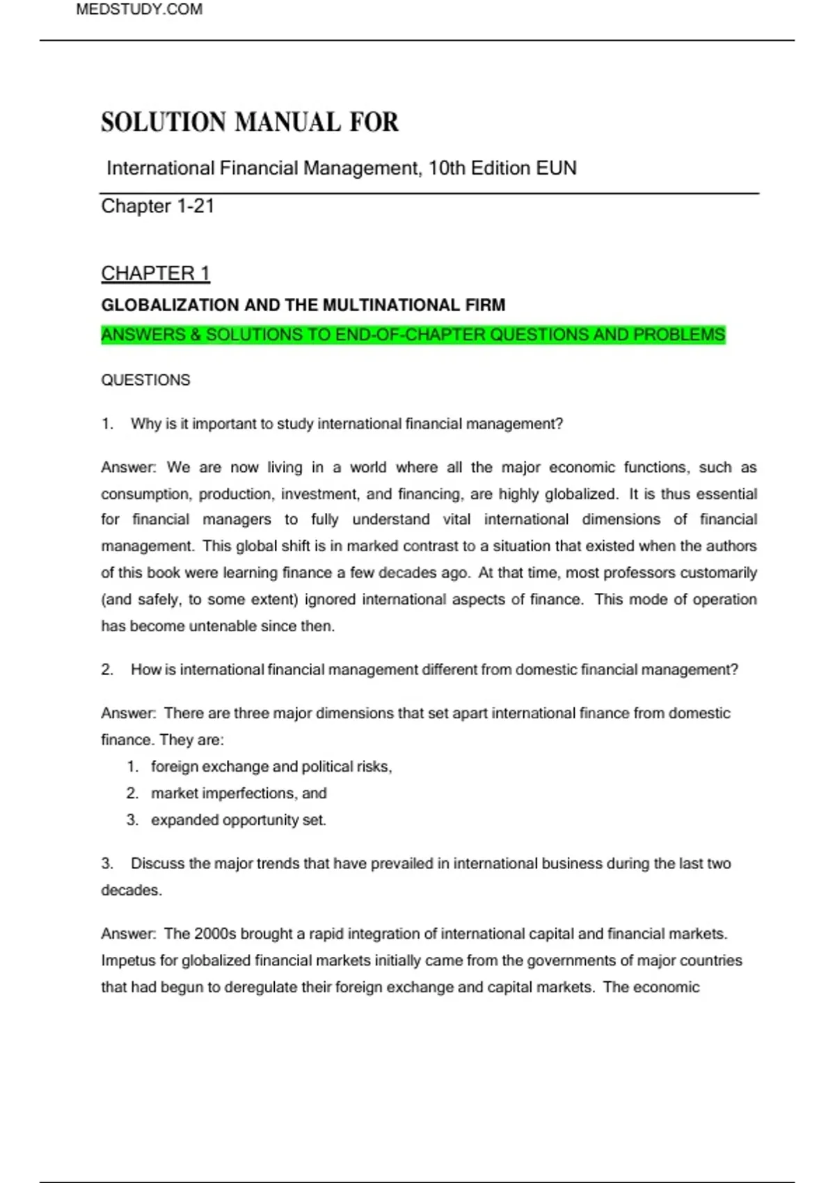 ANSWERS & SOLUTIONS TO END-OF-CHAPTER QUESTIONS AND PROBLEMS