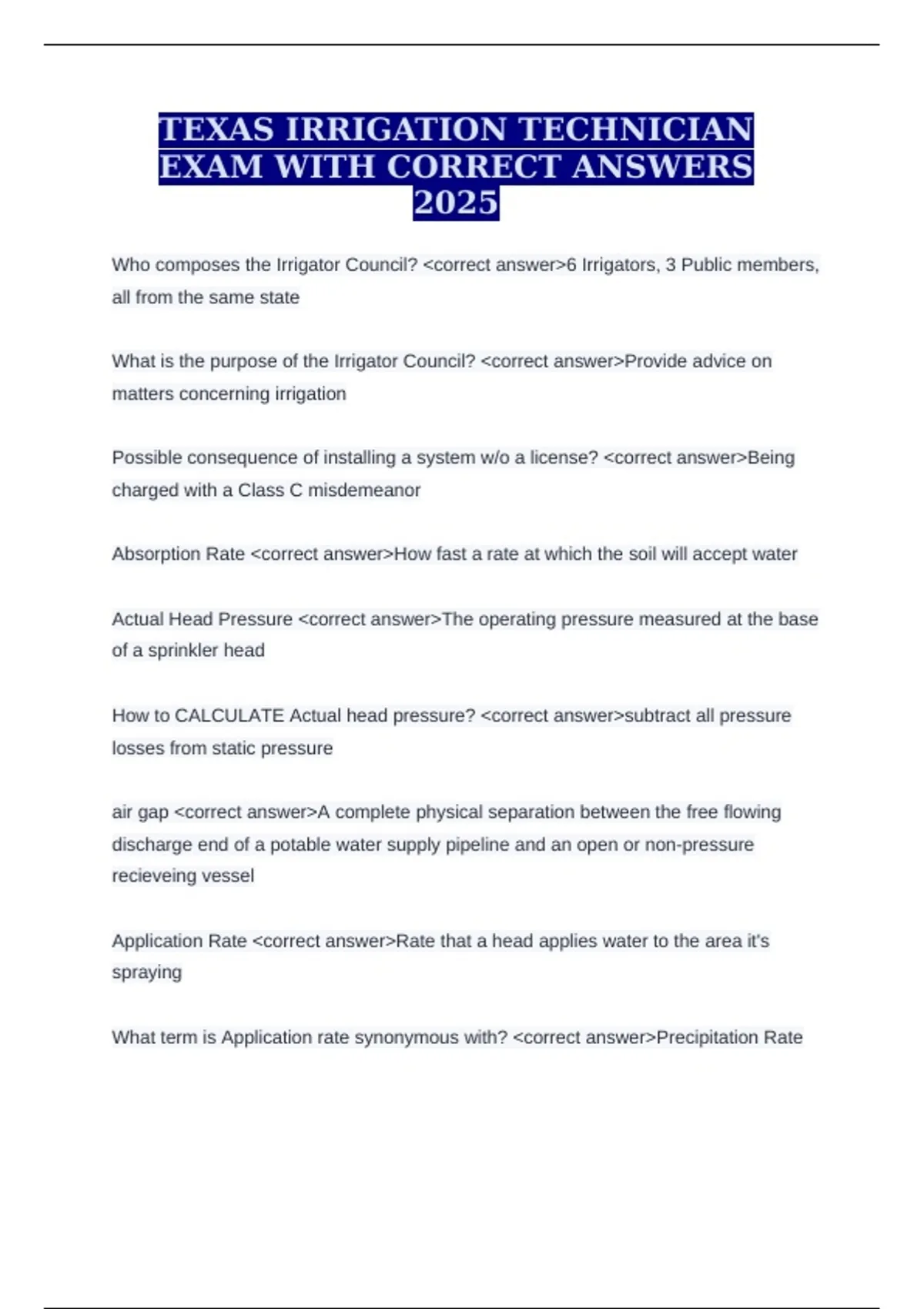 Texas Irrigation Technician Exam
