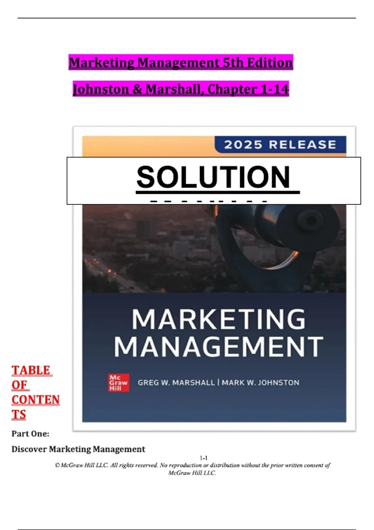 Solution Manual – Marketing Management: 2025 Release ISE 5th Edition – Marshall & Johnston - All 14 Chapters Covered