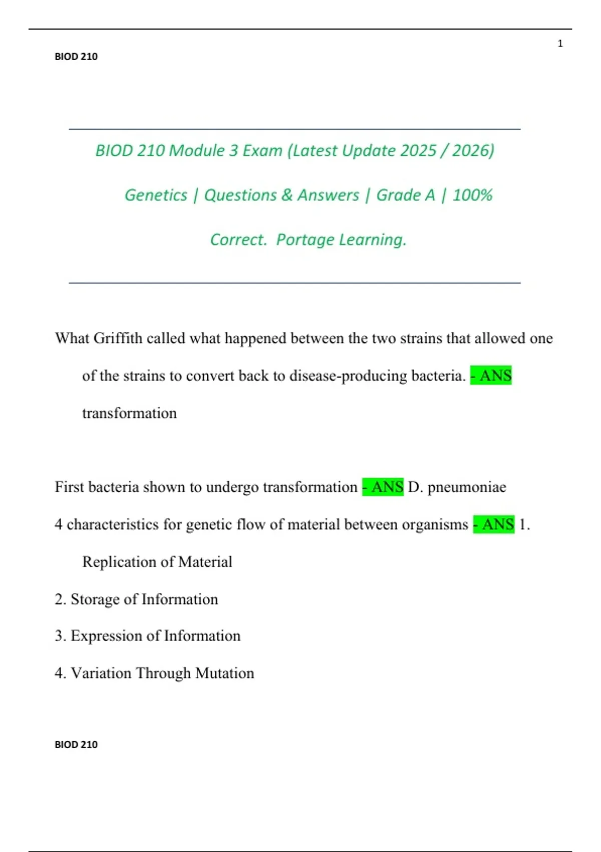 BIOD 210 Module 3 Exam (Latest Update )