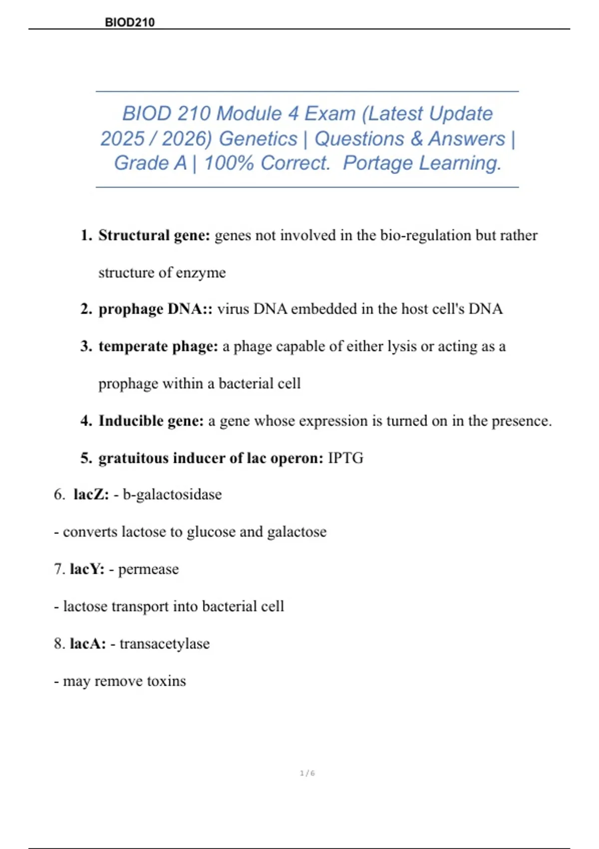 BIOD 210 Module 4 Exam (Latest Update