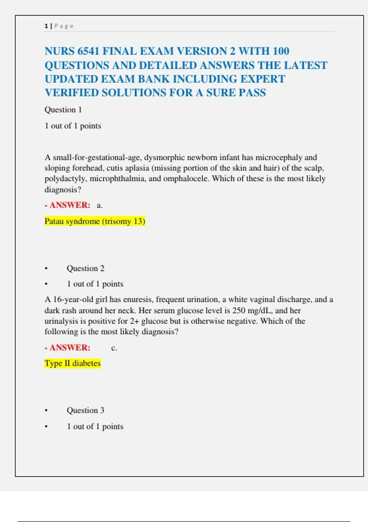 NURS 6541 FINAL EXAM VERSION 2 WITH 100