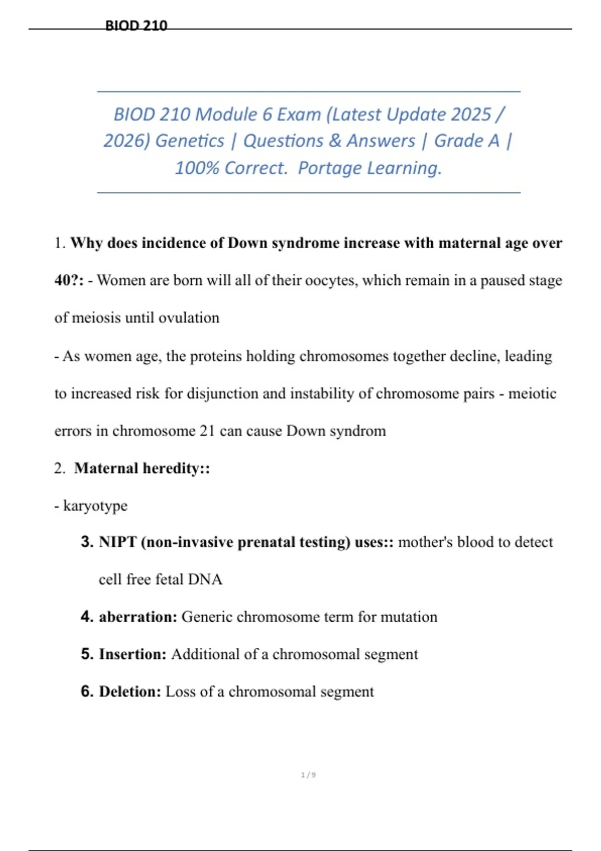 BIOD 210 Module 6 Exam (Latest Update 2025 /