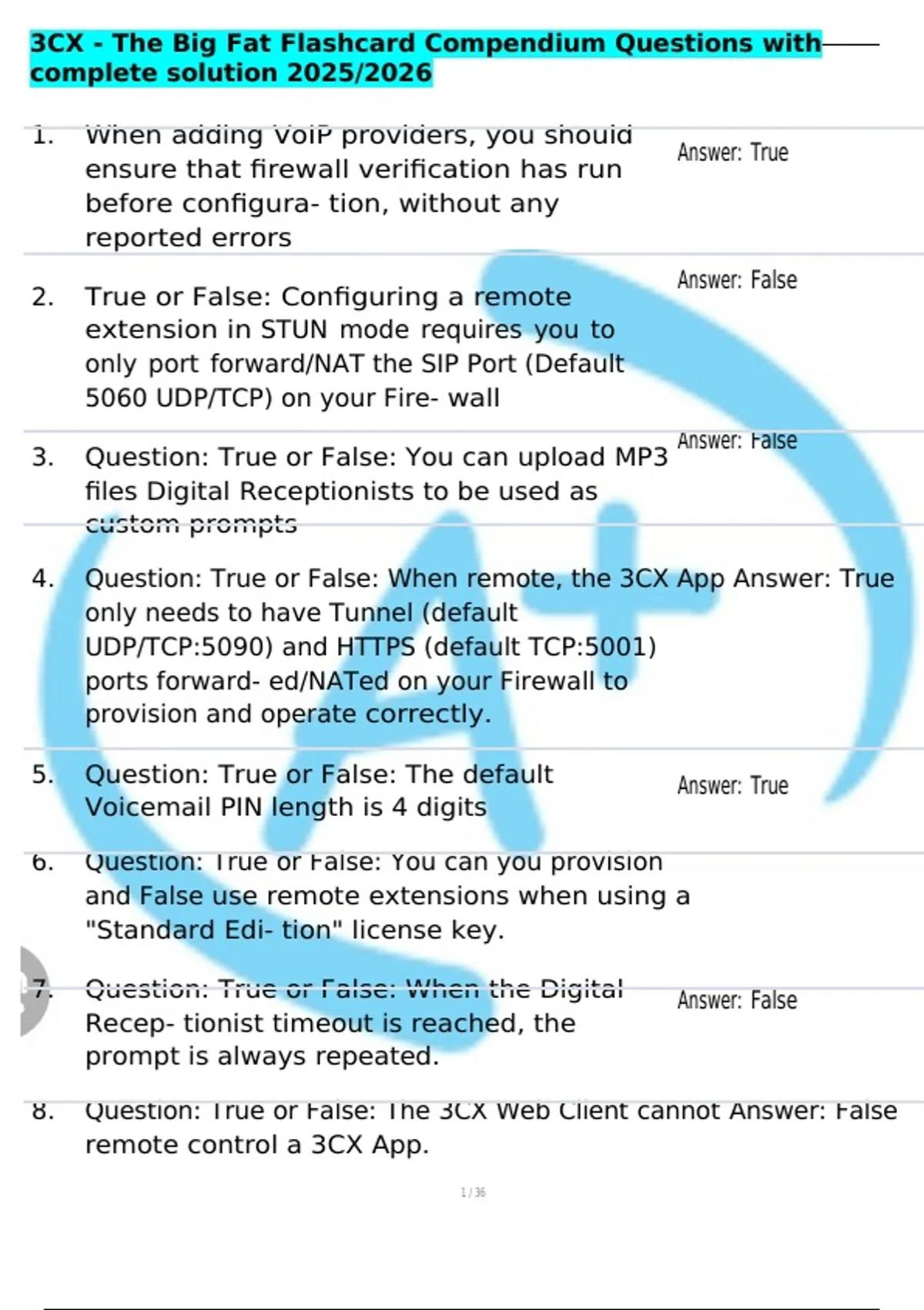 ,3CX - The Big Fat Flashcard Compendium Questions with