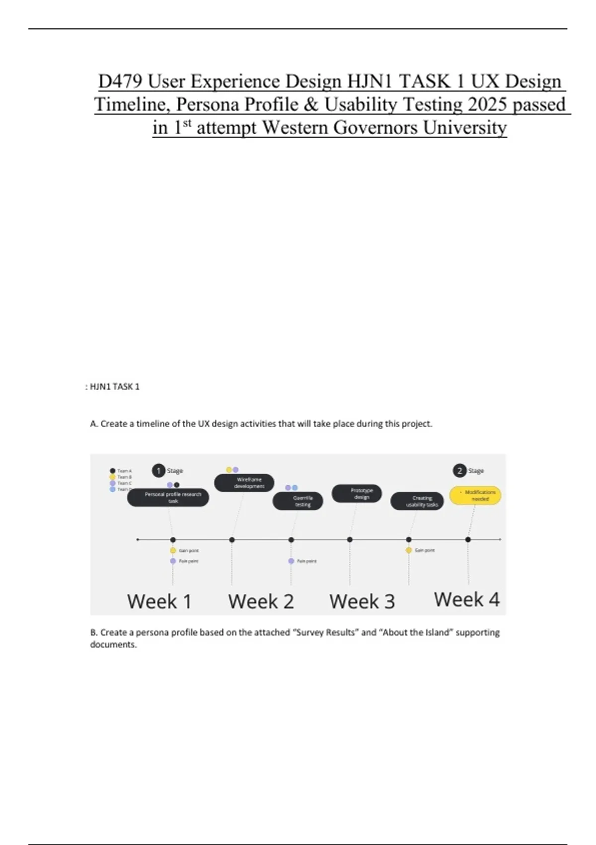 D479 User Experience Design HJN1 TASK 1 UX Design Timeline, Persona Profile & Usability Testing 2025 passed in 1st attempt Western Governors University