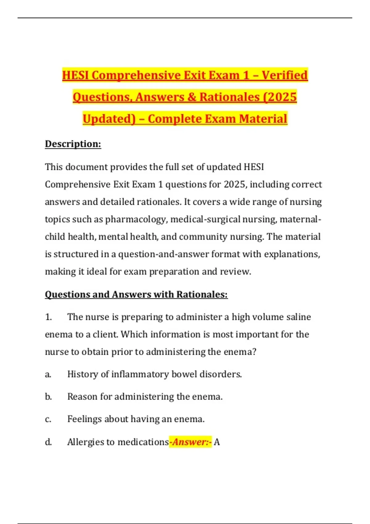 Comprehensive Exit Exam 1 questions for 2025, including correct