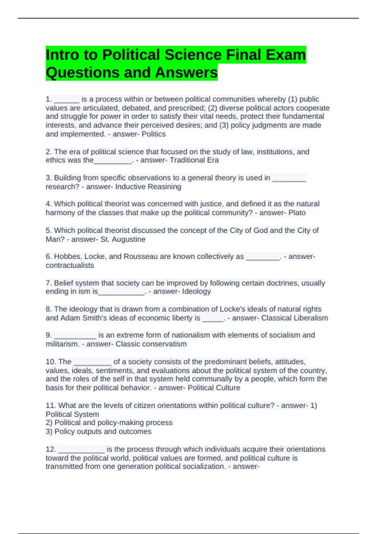 11. What are the levels of citizen orientations within political culture? - answer- 1)