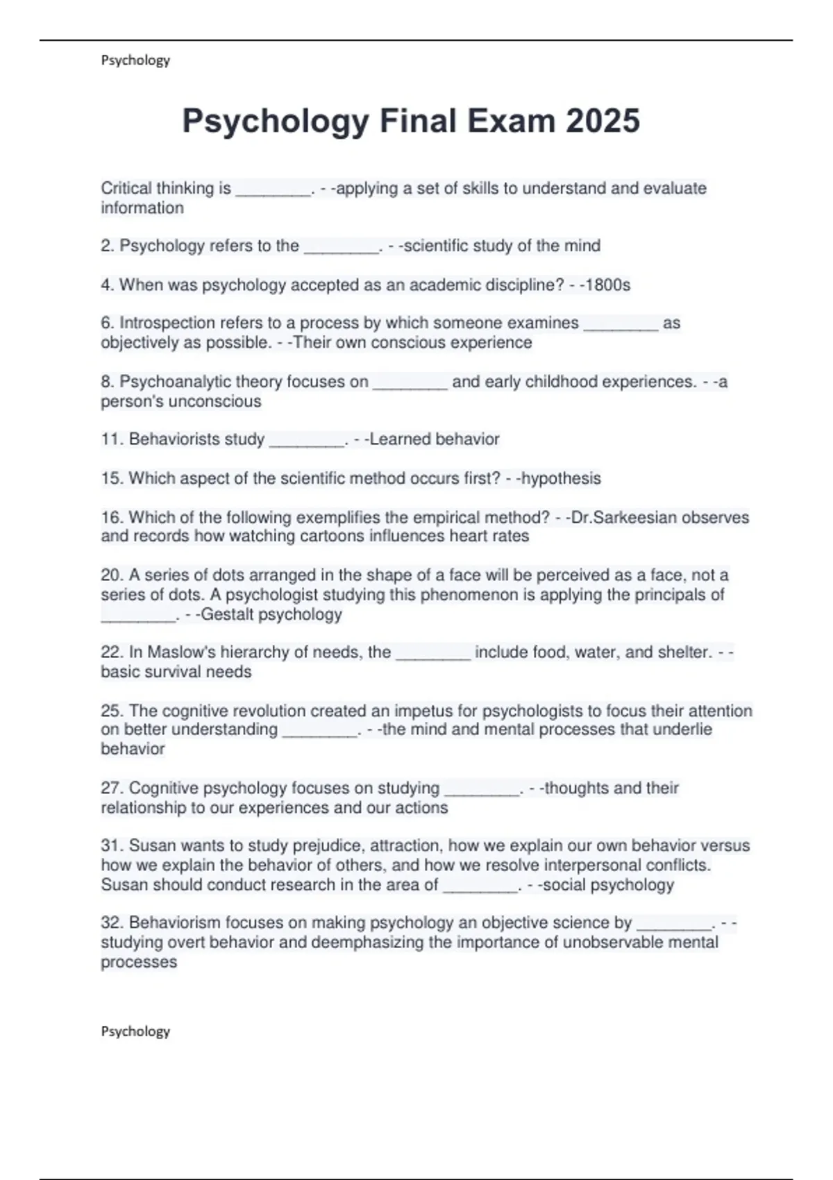 27. Cognitive psychology focuses on studying ________. - -thoughts and their