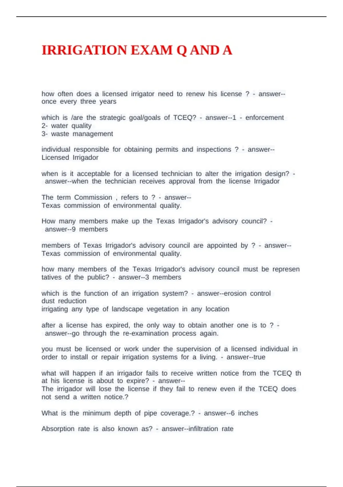 IRRIGATION EXAM Q AND A